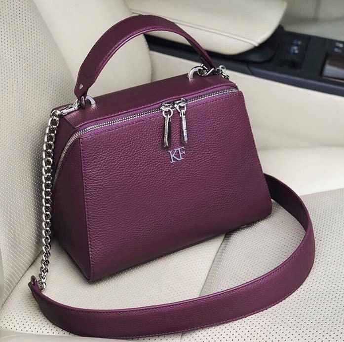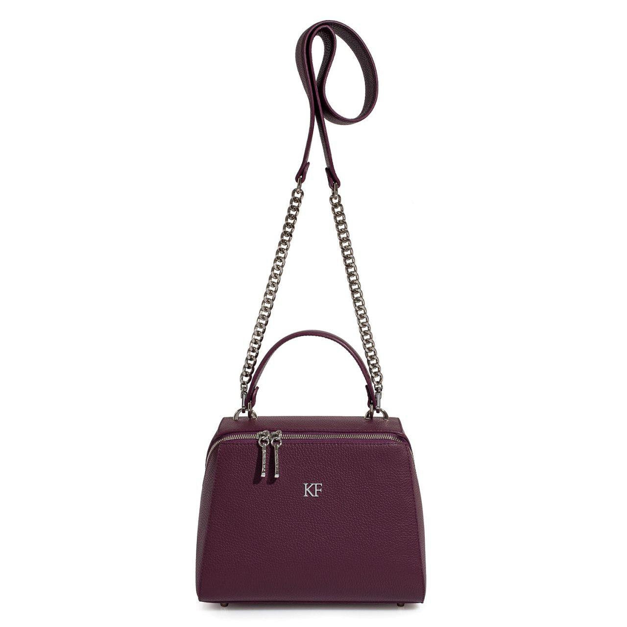 Leather Top Handle Bag, Violet (Blackberry) Leather Handbag Top Handle, Women's Leather Bag KF-3068