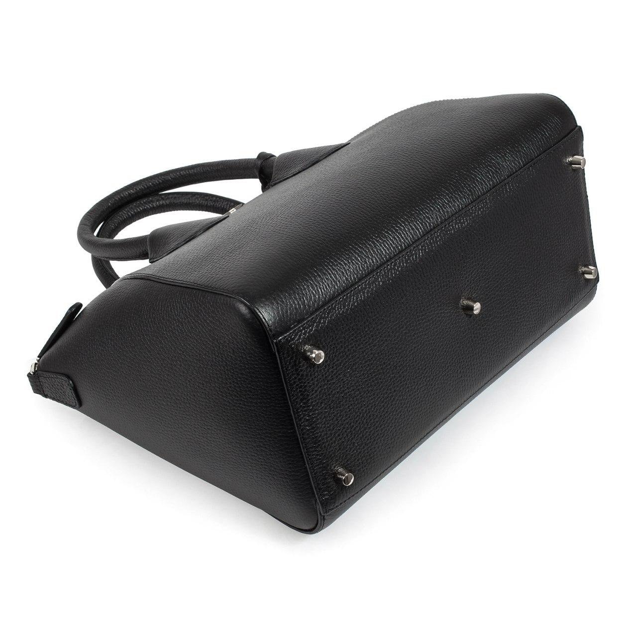 Black genuine leather woman handbag from ukrainian designer Katerina Fox , ideally combines the black crocodile print genuine leather and black leather trim which allows luxurious look and is perfect for any style . Roomy, comfortable bag has sturdy leather handles and includes adjustable long leather handle . All hardware what we use is good quality,reliable and durable. Inside the bag one large compartment , two patch pockets and one zip pocket, bag closes with a zipper . The bottom of the bag is protected by metal legs . This model looks very solid and stylish!