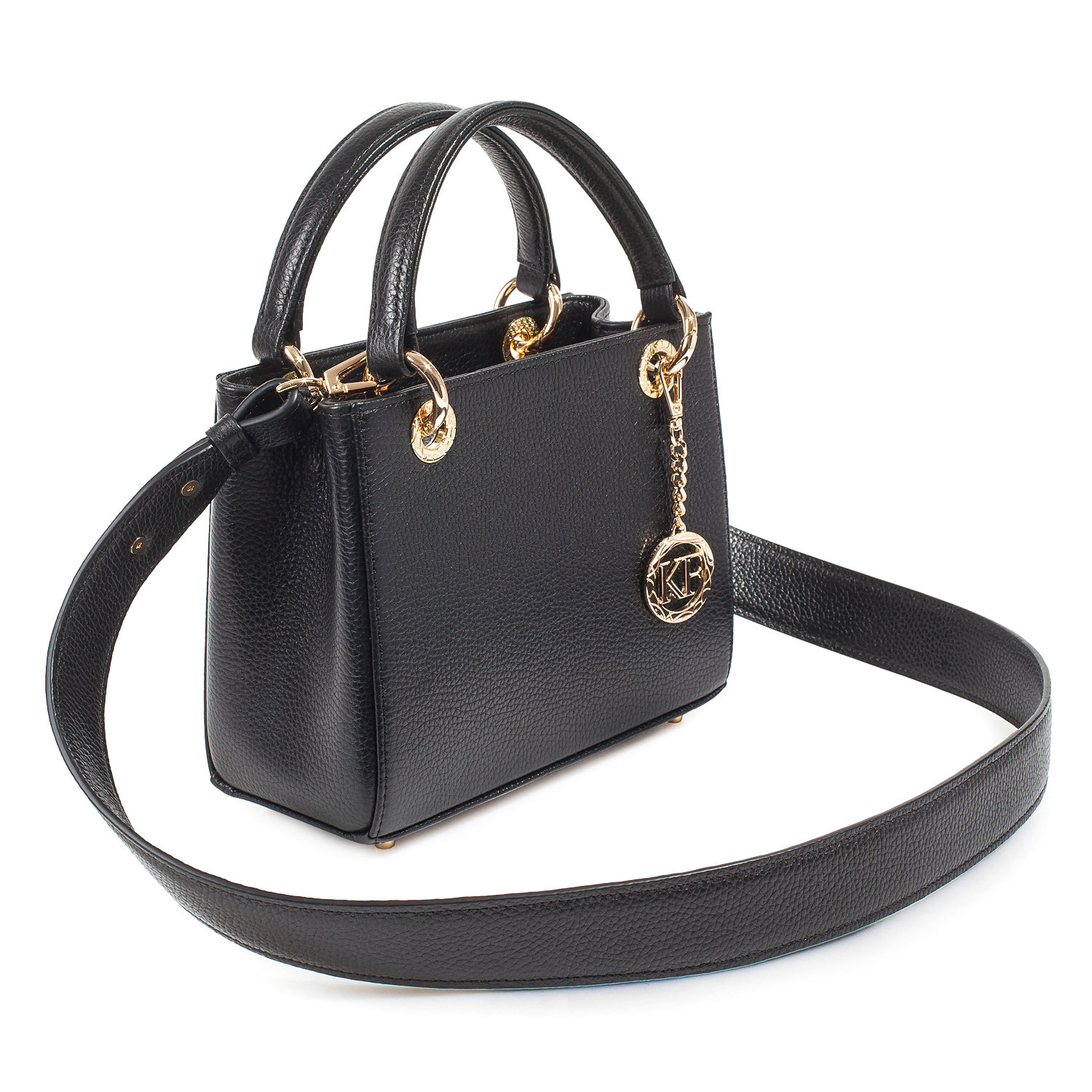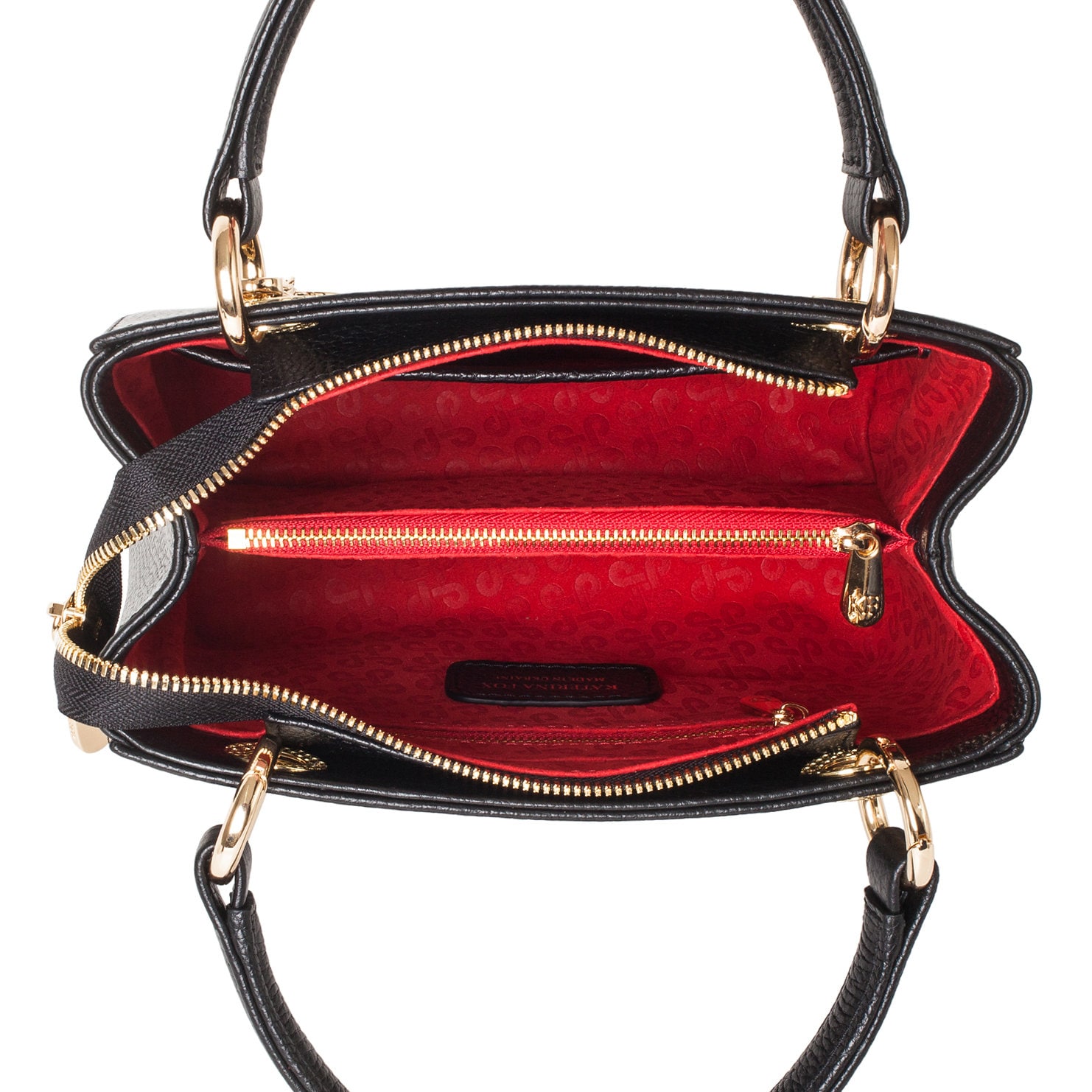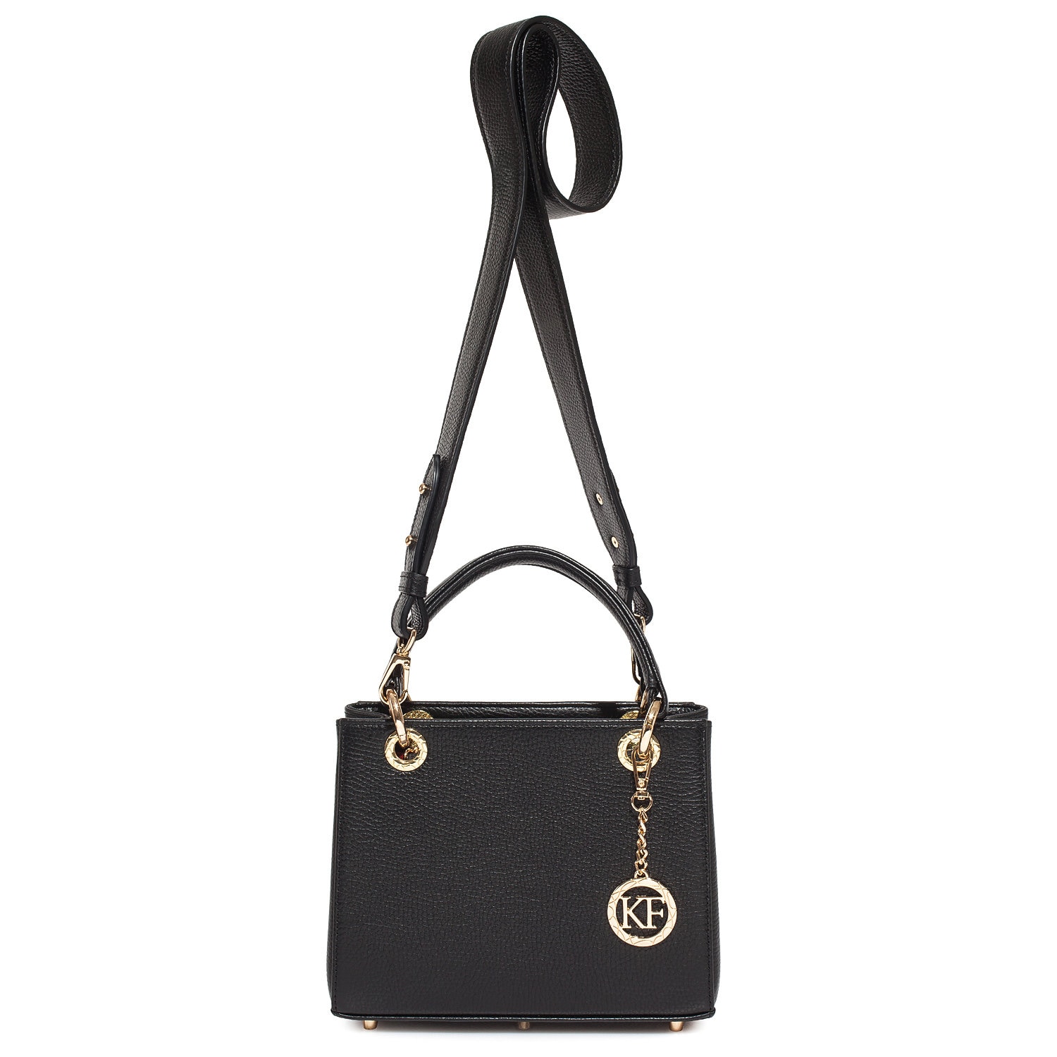 Delivery: In most cases our goods are shipped by FedEx or Ups Express. On rare occasions the goods might be shipped by Ukrposhta. The clients should check in advance an estimate of the amount of customs duty and value added tax.Black genuine leather handbag from ukrainian designer Katerina Fox. This model is designed for women who appreciate the sleek design combined with functionality and comfort. Despite the simplicity, this bag stands out thanks to a triangular insert in black suede leather. High-quality and reliable hardware ensure long service bags. Inside the bag are three spacious compartments, one with zip, two patch pockets and one zippered pocket closes with a zipper. The bottom of the bag protected by metal feet.