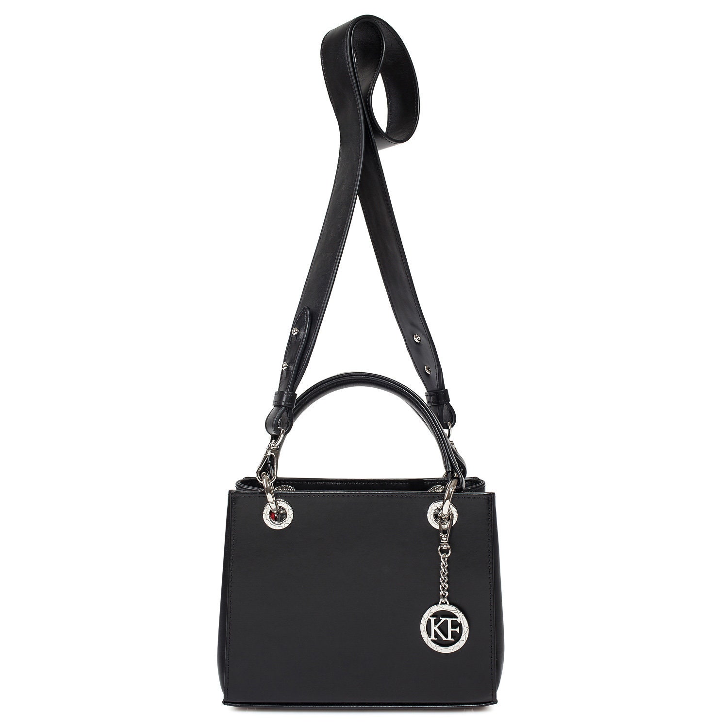 Delivery: In most cases our goods are shipped by FedEx or Ups Express. On rare occasions the goods might be shipped by Ukrposhta. The clients should check in advance an estimate of the amount of customs duty and value added tax.Black genuine leather handbag from ukrainian designer Katerina Fox. This model is designed for women who appreciate the sleek design combined with functionality and comfort. Despite the simplicity, this bag stands out thanks to a triangular insert in black suede leather. High-quality and reliable hardware ensure long service bags. Inside the bag are three spacious compartments, one with zip, two patch pockets and one zippered pocket closes with a zipper. The bottom of the bag protected by metal feet.