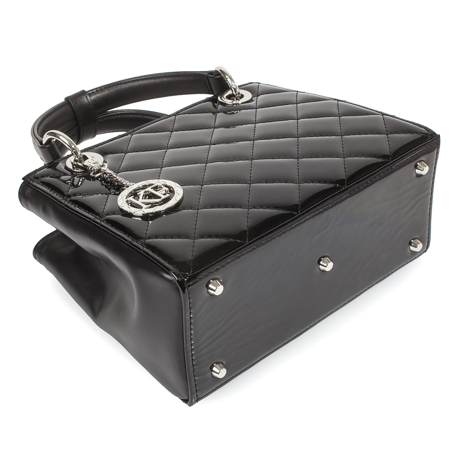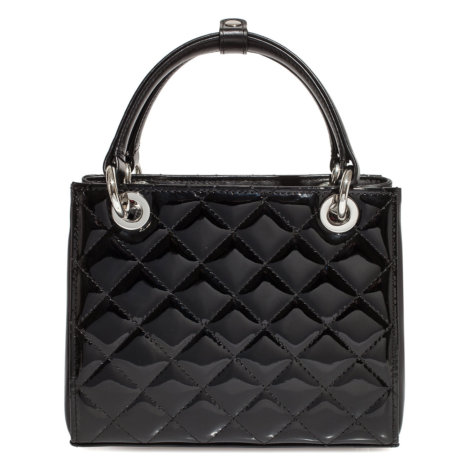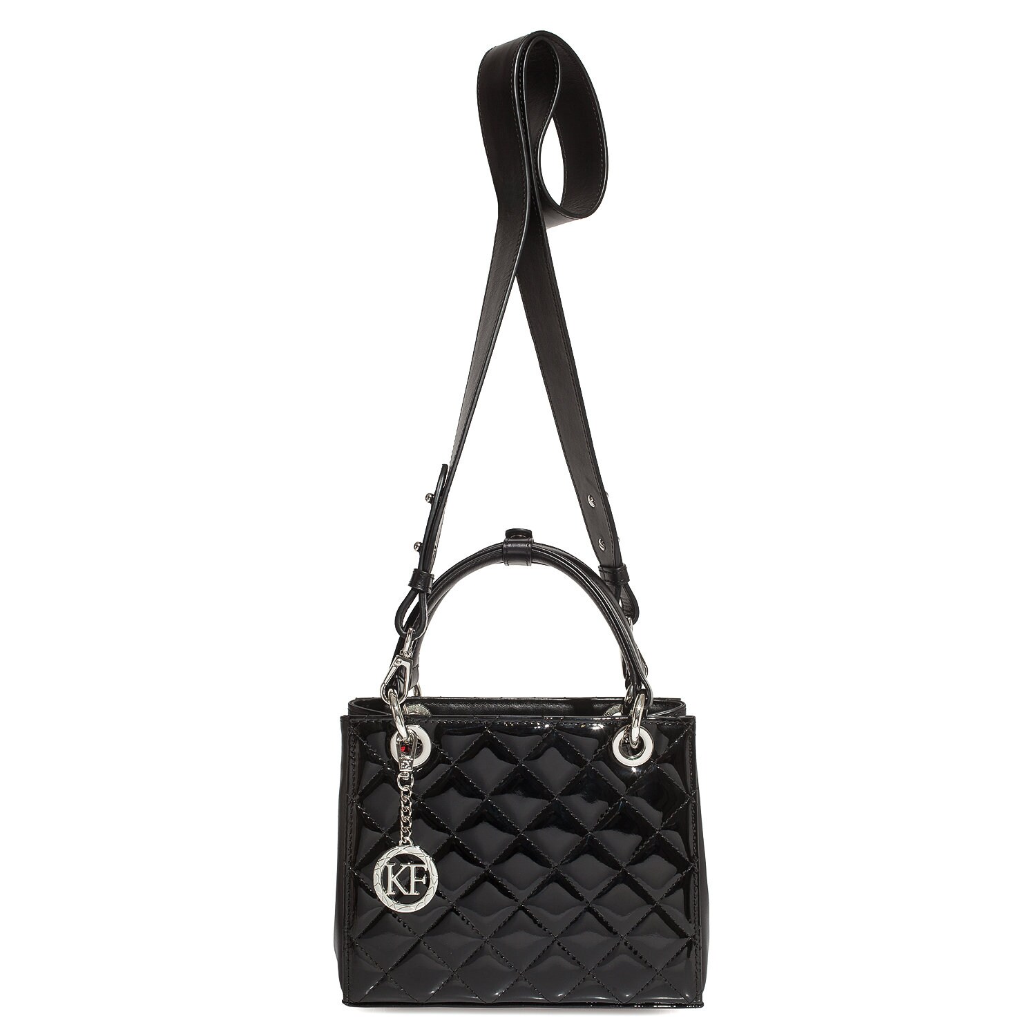 Leather Top Handle Bag, Black Patent Leather Handbag Top Handle, Women's Leather Bag KF-4657